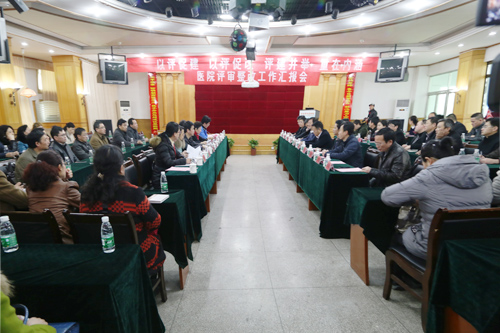 上午8时,临床医学院/附属医院在九楼会议室举行医院评审现场评价反馈问题整改汇报会。省卫计委评审专家组成员、九江学院副校长杨焱林、九江市卫生局调研员吴磊军出席会议。九江市卫生局领导、临床医学院/附属医院领导班子,中层以上干部及职工代表约120余人参加了会议。省卫计委医政医管处梁斌副处长主持会议。