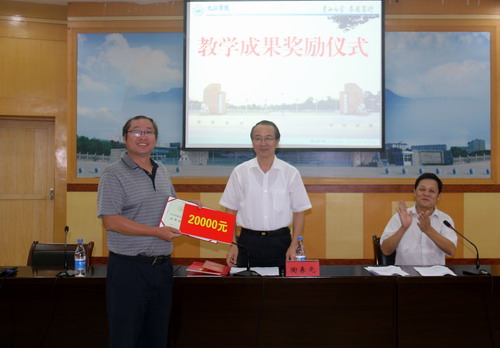 会上,陶春元副校长代表学校向获得第十四批省级教学成果奖的教师颁发了证书和奖金。