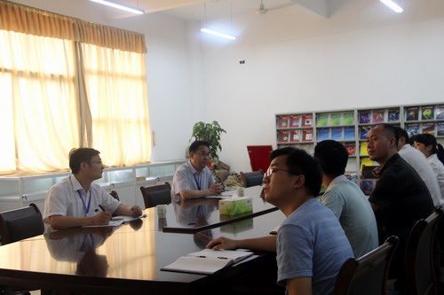 6月12日14:30—15:20,本科教学工作审核评估预评估专家组成员李明斌教授来到教务处走访。教务处处长陈小林,副处长漆晗东、张伏龙参加了访谈。陈小林处长就教学、评建工作作了汇报,李明斌教授就评建工作中的难点问题及教学改革、培养过程等方面与教务处同志进行了交流。