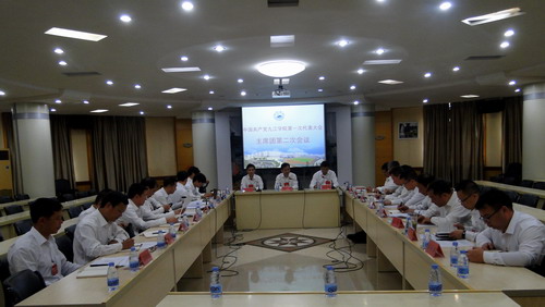 7月15日上午10:30,中国共产党九江学院第一次代表大会主席团在行政楼一号会议室举行第二次会议。刘晓东主持会议。主席团成员、各代表团团长、大会各工作组负责人及有关工作人员参加了会议。