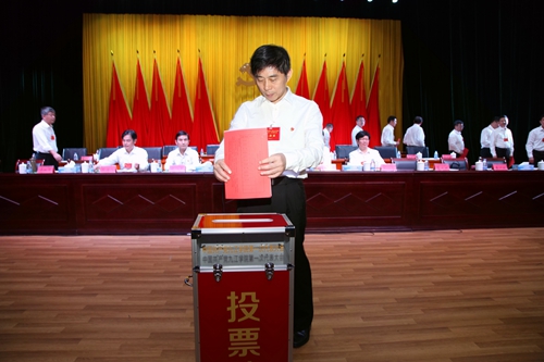在雄壮的《国际歌》乐曲中,中共九江学院第一次代表大会胜利闭幕。