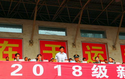会上,王副校长首先代表学校向全体2018级新生的到来表示热烈欢迎,同时向前来我校指导军训工作的武警九江支队船艇大队的官兵表示衷心的感谢。希望全体参训同学发扬吃苦耐劳的精神,通过训练来磨炼自己的意志品质、增强组织纪律观念和集体荣誉感,希望同学们珍惜这段宝贵的经历;希望2018年军训取得圆满成功并预祝同学们未来几年在九江学院学习、生活愉快、顺利。