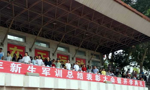 金秋送爽,丹桂飘香。9月16日上午,我校2018级新生军训总结表彰大会暨开学典礼分别在主校区和浔东校区隆重举行。武警九江支队副支队长郭华,在家校领导赵伟、刘晓东、魏立平、纪岗昌、陈春生、杨耀防、夏启国、查振华、李广欣出席了本次会议,各二级学院院长、党委书记以及有关职能部门负责人、全体辅导员、新生班主任及主校区、浔东校区、八里湖校区2018级近万名新生参加了本次大会。军训总结表彰大会由陈春生副校长主持。