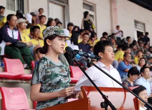 随后,男标兵连和女标兵连代表2018级新生进行了分列式表演。他们整齐的队列、洋溢朝气的面庞、规范而又标准的动作赢得了全场一阵又一阵的掌声与欢呼声。
