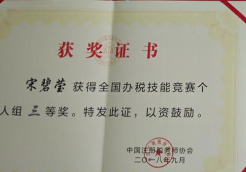 9月16日,全国办税技能大赛决赛在北京成功举行。我校参赛学生龚亚男、黄小凤、卢懿和邹紫媚4名同学脱颖而出,以团体第三名的成绩获得高校组“团体二等奖”,此外,宋碧莹同学获得“个人三等奖”。