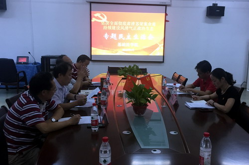 余朝阳同志首先通报了基础医学院党委在专题民主生活会召开前所进行的征求意见情况和会前准备情况,并代表学院党委结合“坚决全面彻底肃清苏荣案余毒,持续建设风清气正政治生态”的会议主题,从“丧失政治立场、不守政治规矩的余毒方面”、“责任缺失、管党治党不力的余毒方面”、“任人唯亲、搞团团伙伙的余毒方面”、“以权谋私、腐化堕落的余毒方面”、“大搞形式主义、形象工程的余毒方面”等五个方面一一进行了对照检查,并对院党委班子由此产生的问题和不足进行了深入剖析,同时以问题为导向,提出了院党委班子下一步的整改措施。