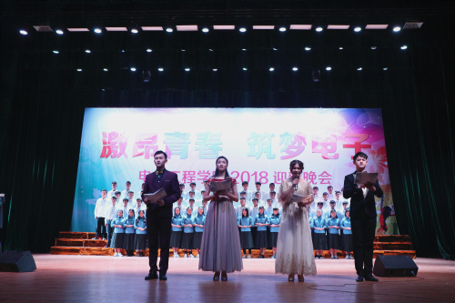 激昂青春,筑梦电子。12月5日晚,电子工程学院2018迎新晚会成功在学校大礼堂举办。副校长纪岗昌与校团委负责人、电子工程学院党政领导班子及全院师生观看了本场晚会。