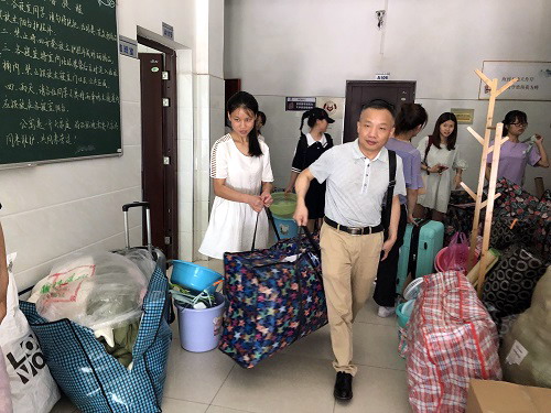 6月26日下午18点30分,随着最后一辆搬家车辆抵达主校区12栋宿舍楼下,标志着八里湖校区搬迁任务顺利完成。