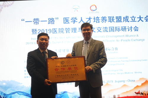 为贯彻落实国务院相关文件精神,6月25日,由国家卫生健康委人才交流服务中心和中法卫生人才健康委员会共同主办,江西省卫生健康委员会协办,九江学院承办的“一带一路”医学人才培养联盟成立大会暨2019医院管理与人文交流国际研讨会在九江市召开。