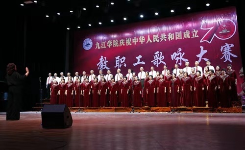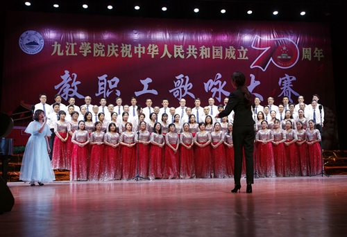 “不忘初心、牢记使命”——庆祝新中国成立70周年教职工歌咏大赛由中共九江学院委员会、九江学院主办,学校党委宣传部和工会具体承办,旨在引导广大教职工更加紧密地团结在以习近平同志为核心的党中央周围,当好主力军,建功新时代;激发广大教职工的爱国热情,团结动员广大教职工不忘初心,牢记使命,立足岗位,为实现建设特色鲜明区域领先的综合性应用型大学办学目标而努力奋斗。