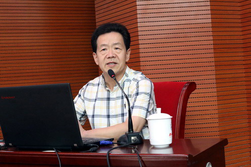 赵伟在主持学习会时介绍了章忠民教授的简历,代表学校对章教授来校作报告表示欢迎和感谢。赵伟指出,还有十五天,我们将迎来新中国成立70周年大庆。在全国喜迎新中国成立七十周年庆典之际,我校深入开展“不忘初心,牢记使命”主题教育之时,我们通过此次学习,一起来回顾和缅怀新中国成立七十年来的光辉历程和伟大成就。