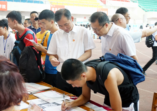 9月3日上午,校党委书记赵伟,校长刘晓东,副校长王万山、陈小林先后来到主校区、浔东校区迎新报到现场实地检查指导迎新工作。他们在迎新报道现场看望新生、问候家长,勉励同学们入学后努力学好新知识、掌握新本领、增长新才干;对部分二级学院咨询处、接待处、行李发放处等地点逐一查看,特别叮嘱工作人员要热情周到服务。