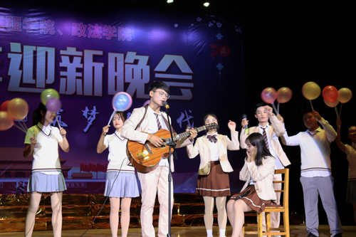 华年璀璨,织梦行云。政法学院情歌对唱《鸽子+爱一点+告白气球》中,悦耳动听的歌声和浪漫的校园爱情让人久久回味无穷。政法学院助导节目中,一改军训场上的严肃,以一场《助导历险记》讲述助导视角的军训故事,点滴回忆浮现在观众眼前,感人至深!