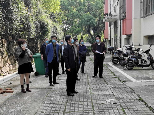 魏立平一行先后来到学校西大门、教工二村、附属医院等地,按照创文测评要求,重点查看校园绿化、环境卫生、车辆停放、医院卫生设施等情况,详细听取了工作人员对志愿服务、宣传栏更新等情况汇报。