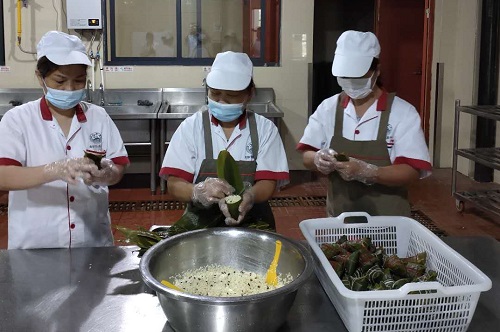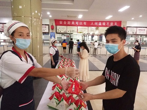 农历五月初五端午节,是国人最喜爱的传统节日之一,而吃粽子更是节日里必不可少的内容。今年的端午意义特殊,返校复学的师生员工面对疫情,校园封闭,都无法回去与家人团聚,也不方便出去购买粽子等物品。学校党委、行政高度重视和关爱师生的节日菜单,指示饮服中心一定要让返校复学的师生过上一个暖心的佳节。