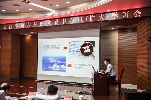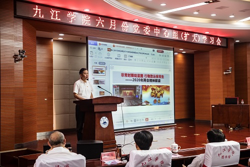 会上,马克思主义学院赵文博士作了题为《非常时期绘蓝图行稳致远保民生》的专题辅导报告。赵博士从2020年两会风采掠影、2020年两会精神要览、2020年两会热点聚焦等方面对两会精神作了详细解读。