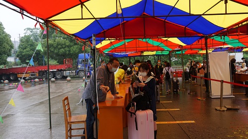 绵绵细雨阻挡不了同学们返校复学报到的热情,从各地返校的同学们或由亲友自驾、或乘坐九江学院学生返校公交专线陆续进入学校西大门复学报到专用通道,根据标识牌,在工作人员的引领下,按照间隔线,保持安全距离,排队安全有序地完成体温检测、个人身份核对、健康码查验、扫码报到登记等复学报到程序。当同学们进入校园后,即可乘坐校车回到宿舍。