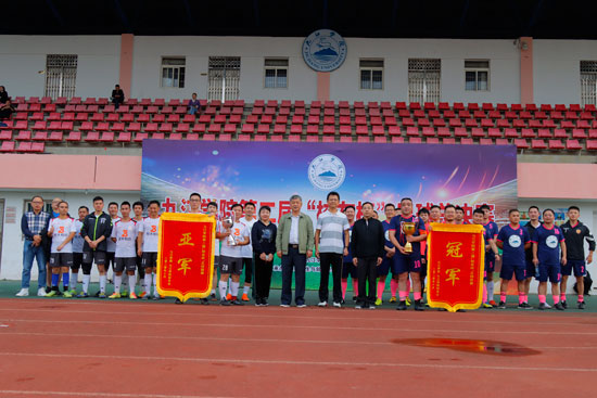 比赛结束后,校领导分别为四支队伍进行颁奖。全场欢呼声雷动,双方队员互相击掌拥抱,我校第二届“校友杯”足球赛、篮球赛圆满落下帷幕。