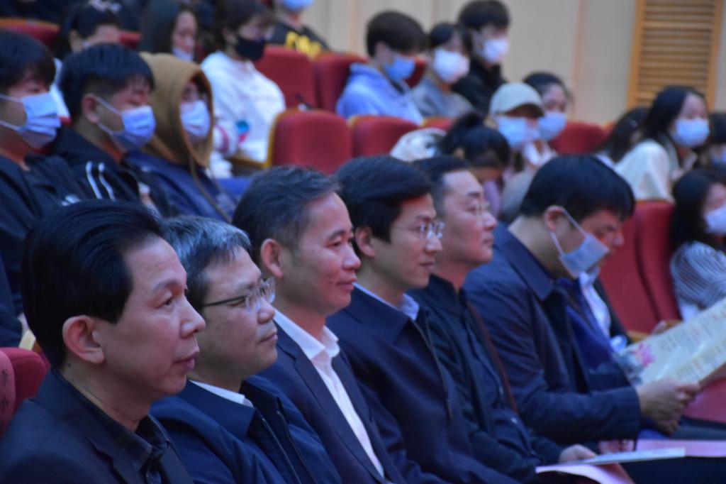 江西省文旅厅副厅长郎道先,九江市副市长李小平,我校党委书记赵伟,副校长查振华、陈小林,省文旅厅非遗处副处长吴先华,九江市文广新旅局局长徐卿、二级调研员副局长吴予雍、副局长方行宇出席并观赏了汇报演出。我校党政办、艺术学院及湖口县相关领导参加了结业仪式。副校长陈小林主持仪式。