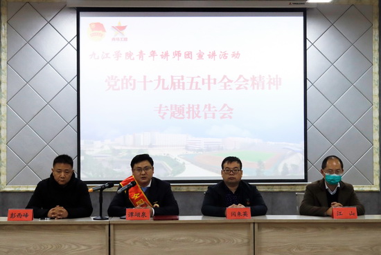 12月1日下午,校团委学习党的十九届五中全会精神青年讲师团专场宣讲会在望庐楼101教室举行。全国先进工作者、校团委办公室主任、青年讲师团谭翊泉老师以自己的亲身经历讲述投身脱贫攻坚的劳动情怀,诠释新发展理念的基层实践。校扶贫工作队成员、团干部和青马工程大骨班学员参加了宣讲会。