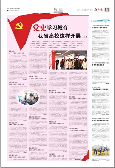 利用红色资源全面学、保证原汁原味深入学、树立正确党史观对标学、结合江财特色多样学,是江西财经大学开展党史学习教育的着力点。
