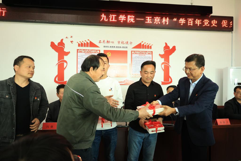 为庆祝中国共产党建党百年,深入开展党史学习教育,3月24日下午,我校与庐山市白鹿镇玉京村共同开展的“学百年党史 促乡村振兴” 文明实践活动举行。校党委副书记、校长刘晓东出席活动,并向玉京村赠送文明实践活动经费。省委宣传部驻庐山市白鹿镇玉京村第一书记赖政兵,我校党委委员、宣传部部长冯健,团委负责人,马克思主义学院6名博士教授和团委选派的4名大学生组建成的党史宣讲团成员、玉京村乡村干部代表、党员群众代表参加启动仪式。庐山市市委常委、统战部长程剑致辞。