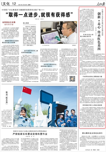 4月26日《人民日报》在刊发的红色走读综述报道中写到了我校的做法,全文如下: