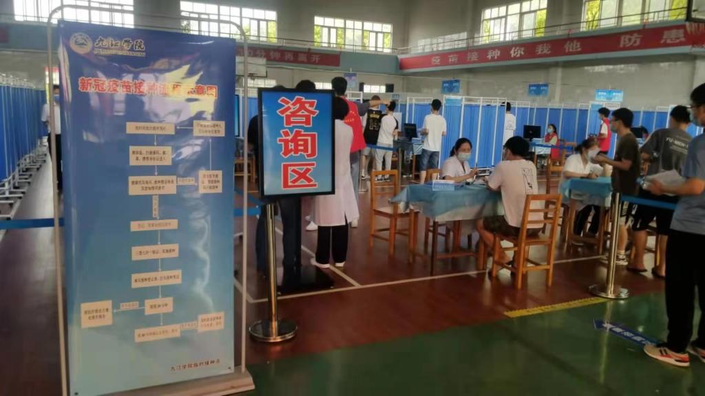为构筑更加坚实的校园健康防线,建立新冠病毒免疫屏障,按照国家和江西省疫情防控指挥部办公室《关于进一步做好新冠病毒疫苗接种工作的通知》等文件精神以及九江市、濂溪区卫健委关于做好新冠病毒疫苗接种工作有关安排,我校于5月15日早上8:00在学校南区体育训练馆启动新冠疫苗接种工作。截至15日下午6:00,已有2182名学生完成第一针接种。