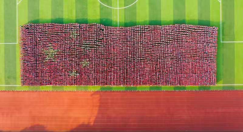 根据疫情防控要求,这次大会简化了相应流程。2021级新生们在会场上展示了团体图案表演和手舞表演。
