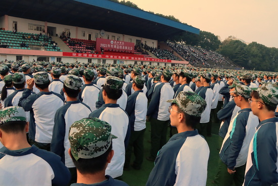 7000余名2021级新生,全体2021级新生班辅导员、班主任,九江军分区及我校各二级学院、相关部门负责人参加了大会。
