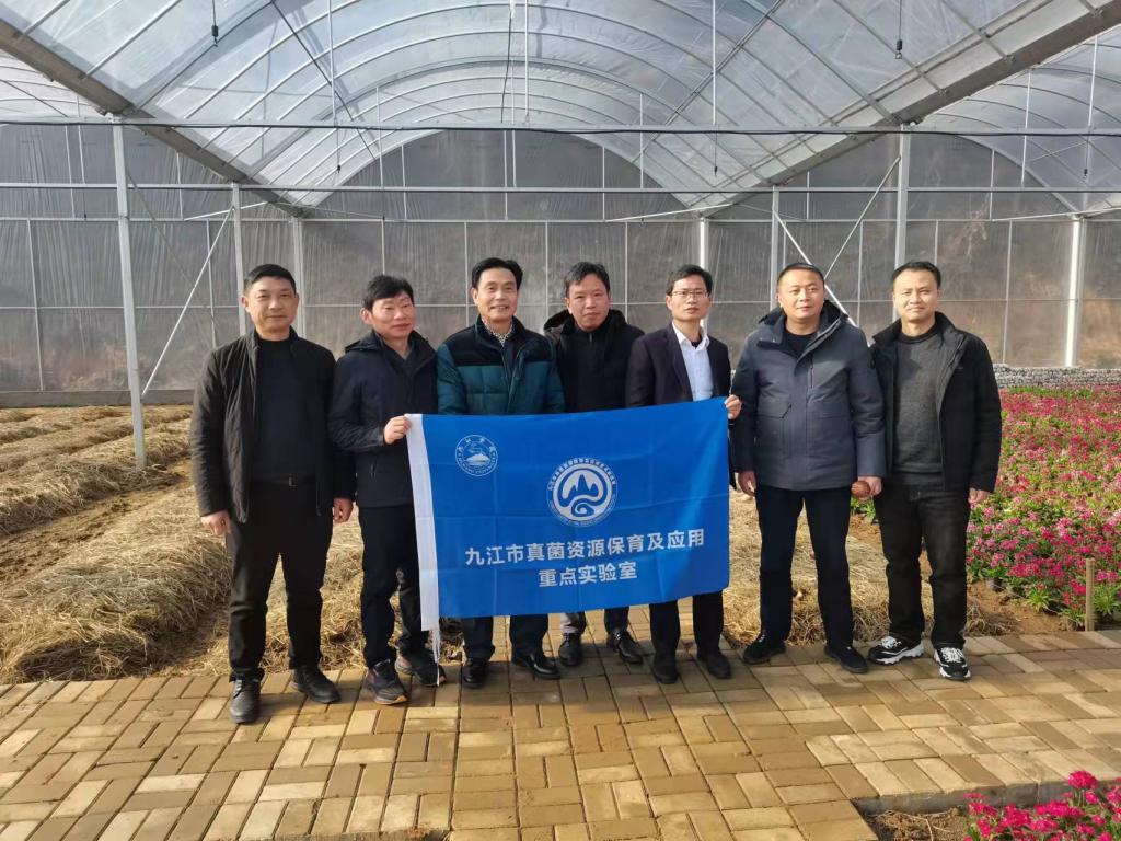 在食用菌栽培大棚,实地考察食用菌栽培种植情况