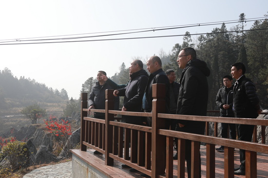 在石林·桃源景区和英山茶博园,陈小林在鲁溪镇党委书记肖龙雨的介绍下,详细了解了双新村乡村旅游点的建设和白茶产业的发展情况。