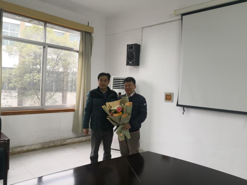 校纪委书记李广欣走访看望药学与生命科学学院教授戴四发博士。