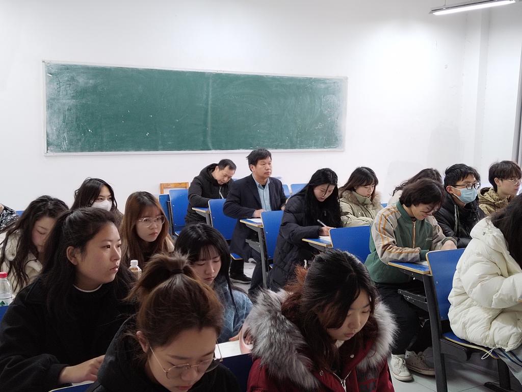 在主校区立信楼,陈小林听取了卢凌老师讲授的中级财务会计课程和吴娜老师讲授的税法课程。陈小林还查看了教学楼厕所改造利用情况。