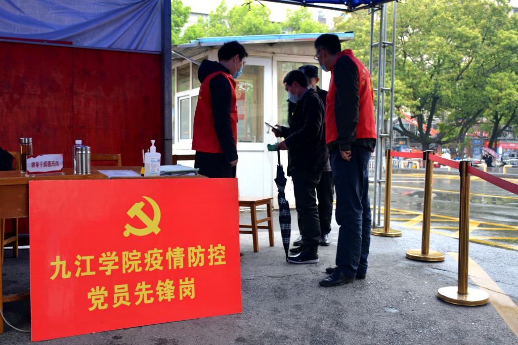 彰显本色,勇担使命。领导干部身先士卒,发挥示范带动作用。学校在各校区校园大门和匡庐苑大门设立“领导干部值班岗”,每天安排处级干部和科级干部值班,守好疫情防控第一道防线,处理突发情况。在各校区校园大门、匡庐苑大门、各食堂、学校社区设立“疫情防控党员先锋岗”,在疫情防控一线践行初心使命、展现责任担当。