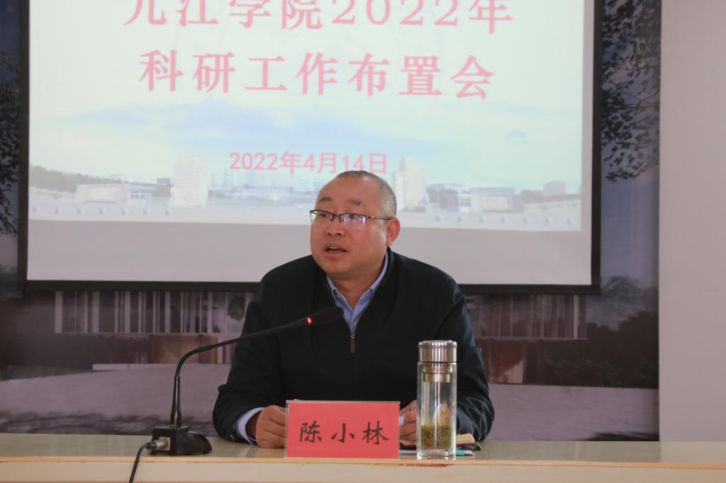陈小林在讲话时指出,科研的水平和质量是体现大学办学实力和服务社会能力的一项重要指标。学校当前正处在跨越发展的重要战略机遇期,全校上下要提高思想认识,切实增强做好科研工作的紧迫感和责任感。