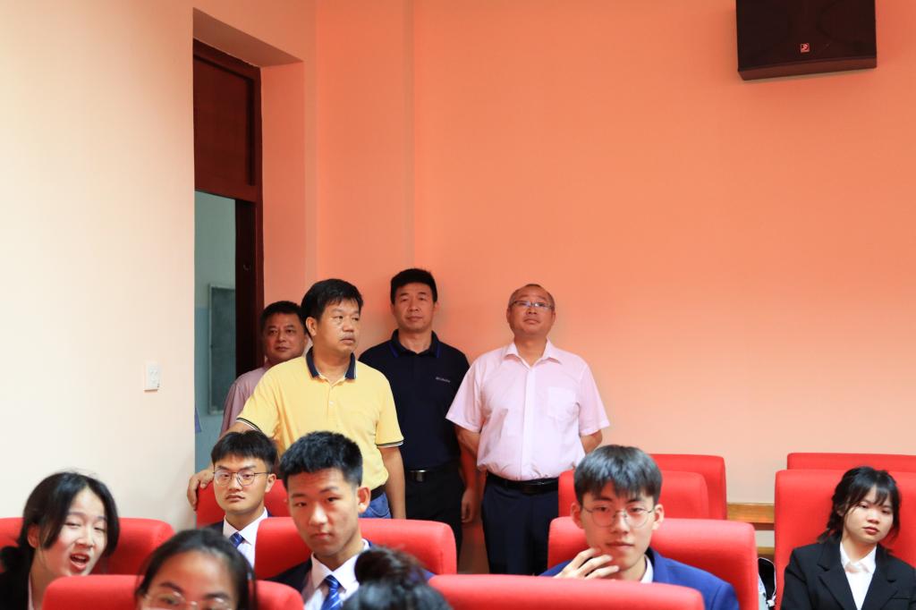 期间,陈小林、陈春生还亲临赛场观摩了激烈而又紧凑的赛况。赛场上,参赛选手们都精心着装、身姿笔挺,在路演时如数家珍、娓娓道来,在答问环节神态镇定、对答如流。当看到同学们的精彩路演,陈小林为同学们竖起了大拇指。