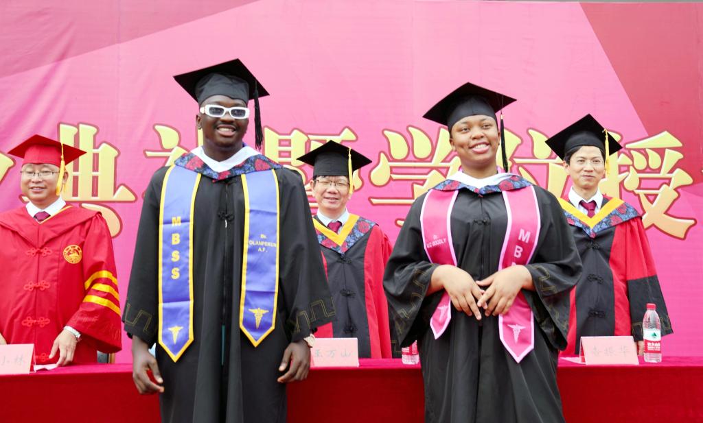 “作为九院的一名教师,在此我想向各位同学提三点建议,并与各位同学共勉:一是愿你们做一位身心健康的人;二是愿你们做一位爱学习﹑爱国家的人;三是愿你们做一位具有高尚品德的的人。今天,天空作美,送大家一场及时雨,愿它能洗去各位学子以往所有的烦恼,雨后带给大家一生的好运。也愿各位同学做一位身心健康,爱学习,爱国家,一个堂堂正正的中国人。”教师代表、药生学院副院长张化浩博士用心声勉励毕业生不忘初心,砥砺前行。
