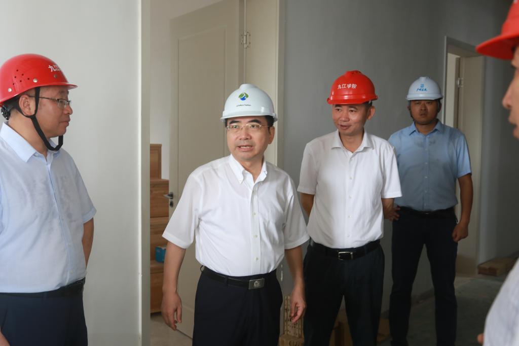 7月21日上午,九江市委副书记蒋文定来校调研指导省运会场馆建设,校党委书记赵伟、校长陈小林、副校长夏启国陪同。