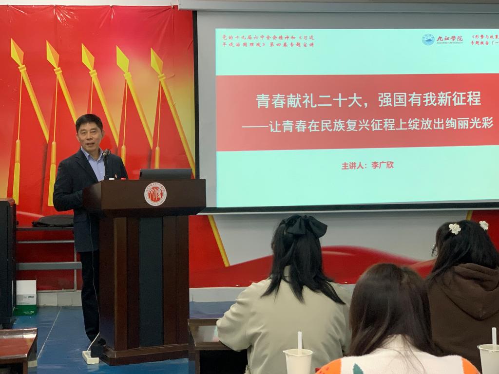 近年来,九江学院深入贯彻落实习近平总书记关于教育工作的重要论述,切实加强党对思政课建设的全面领导,全面引领思政课改革创新,坚持用习近平新时代中国特色社会主义思想铸魂育人,进一步提高思政课实效。每个学期初,校院两级领导深入班级和课堂给大学生讲授思政课,已经成为九江学院育人工作的一个优良传统,并受到广大学生的认可和欢迎。