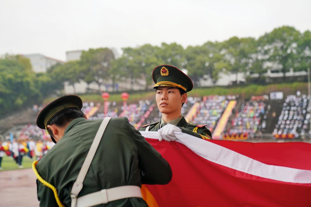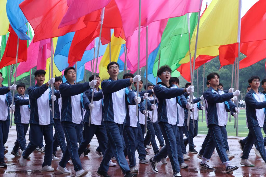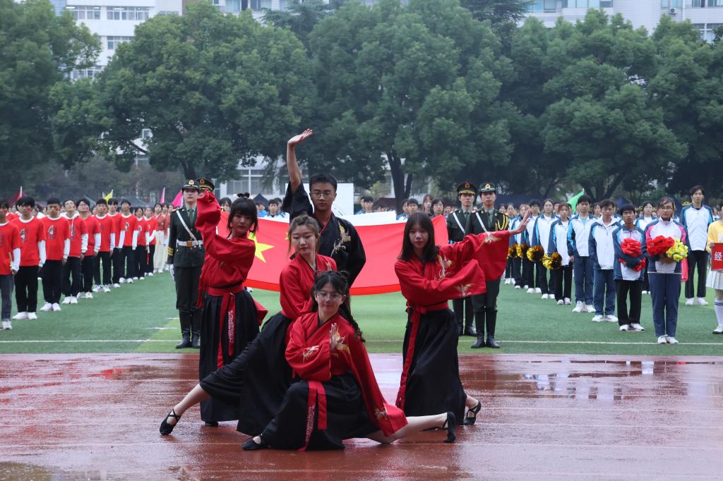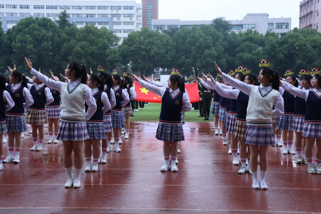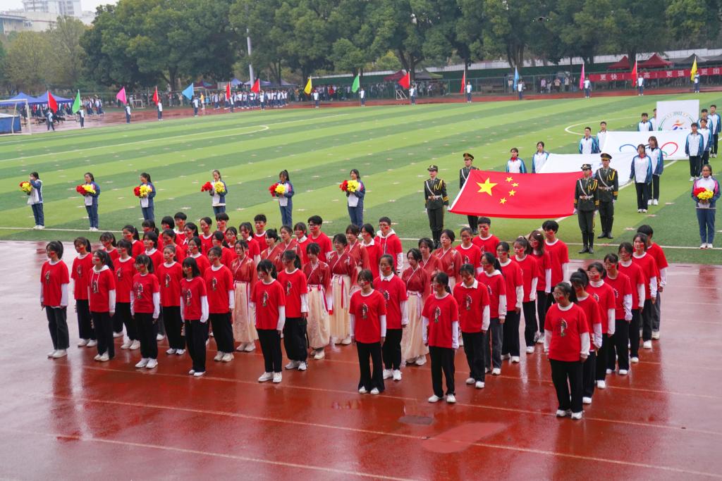入场仪式结束后,国旗班的同学们迈着矫健整齐的步伐走向升旗台。庄严的国歌声响起,在全体师生的注目礼下,五星红旗冉冉升起,飘扬在学校的上空。