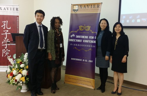 当地时间11月11日至13日,美国萨凡纳州立大学孔子学院中外方院长罗其娟应邀参加了在路易斯安娜州新奥尔良市召开的“第八届美南孔子学院院长经验交流会”。会议由中华人民共和国驻休斯顿领馆发起、赞助,泽维尔大学孔子学院组织承办,泽维尔大学孔子学院院长江瑜博士主持,泽维尔大学校长R. Verret博士到会并讲话。来自美南地区二十一所孔院的三十八位中外方院长参加了此次经验交流会。
