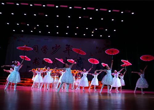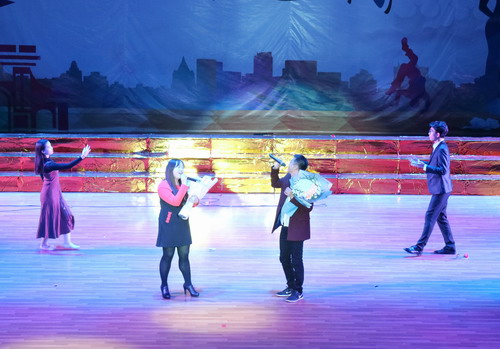 晚会在教职工子女欢快乐、热闹的开场舞中拉开帷幕。随后,由合唱队带来的歌曲《唱支山歌给党听》表达了新时代的新青年们对十九大胜利召开的祝贺,对伟大中国共产党的祝福,也预示了他们愿意为建设中国梦努力的决心;啦啦操《BangBang》向大家展示了电商学子的青春活力;李志勇老师和高燕燕老师合唱的《你最珍贵》,歌声婉转动人,扣人心弦,展现了电商教师多才多艺的一面;古典舞《凉凉》则把大家带回到了那十里灼灼桃林;2017级助导带来的精彩秀以及舞蹈让大家看到了不一样的助导;小品《校园交响曲》,则在幽默诙谐中引导大家在大学追求自由、进取的生活;民谣弹唱《愿爱无忧》在淡淡的潜吟清唱中让大家品味了民谣的魅力。