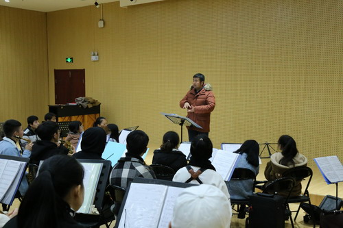 首先管乐团演奏了本届大学生艺术展演获奖曲目《舞蛇人》,由郑老师对管乐团进行了详细的指导。随后郑老师及杨老师给乐团提出了一些建议,希望同学们演奏的声音可以更加融合、更加统一。声部之间要彼此聆听相互配合。同时从音乐的节奏、强弱对比等方面对乐团提出了新的要求,最后郑老师对学生们嘱咐,要热爱自己的专业,要享受每次演出的过程。