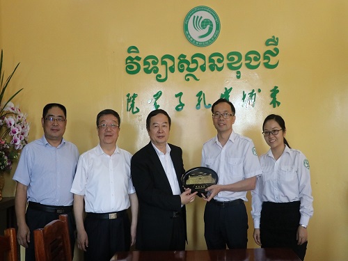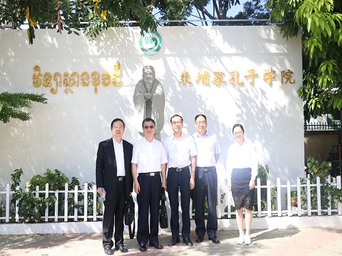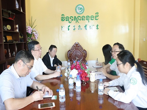 12月18日上午,郑州大学马克思主义学院院长于向东、郑州大学原党委书记郑永扣、郑州大学国际教育学院院长焦小民访问了柬埔寨王家研究院孔子学院,孔子学院中方院长夏修龙教授、行政处办公室主任欧阳娟老师热情接待了来宾,双方于孔子学院会议室进行友好会谈。