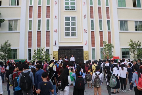本次新春游园会以“十犬十美 庆贺新春”为主题,以“狗年”为活动设计元素,共设有10个游戏馆,各馆以不同的中国传统春节文化为主题,包括写春联、贴春联、贴年画、看春晚、团圆饭、吃饺子等,每个场馆由一名志愿者老师负责,设置了不同的中国传统游戏让学生们参与,如写春联、丢福袋、夹豆子比赛、翻红包等。精彩有趣的游戏吸引了众多学生的参与,操场上人头攒动。为了集齐各馆的“旺旺”狗狗贴纸以换取新春礼品,学生们激动兴奋地穿梭于各馆之间,积极参与各馆主题游戏。各馆负责老师耳边萦绕着学生们的欢声笑语:“老师,这个馆怎么玩?”,“老师,我马上就要得到十个‘旺旺’贴纸了!加油!”,“老师,你看,我的积分卡换到了一把扇子!好开心!”。馆前还围着很多想参加游戏的学生,急切渴望而又兴奋难抑的心情在他们的眼神中显现,现场气氛活跃,热闹非凡。