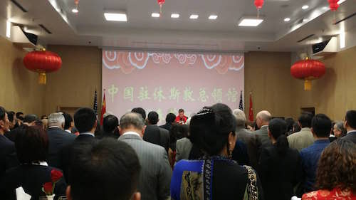 李总领事在招待会上发表致辞并向美南地区华人华侨拜年。致辞中介绍了中共十九大精神,中国经济发展及中美关系等情况,高度赞扬了美南地区华人华侨爱国爱乡、团结互助的可贵精神,期待广大侨胞找准中美合作切入点,积极投身两国友好事业,在各自岗位上取得新的佳绩。