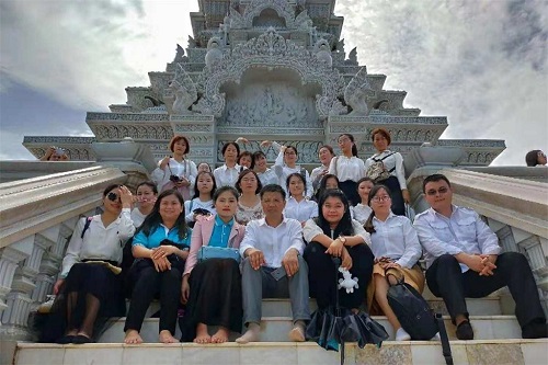 下午两点,苏碧娜院长和柴克清院长带领教师们一起前往柬埔寨古都旧址---乌冬山( Oudongk Mountain),苏碧娜院长边走边为大家讲解该山的历史和文化背景。在领略到乌冬山的历史之后,也欣赏到了秀美的景色。山上最高处的佛塔与洞里萨湖遥遥相望,教师们身处柬埔寨特有的佛教文化和山水之景中,切身体会到了高棉文化的魅力,加深了对柬埔寨的了解,对中柬两国文化之间的异同有了更加切实的体会。