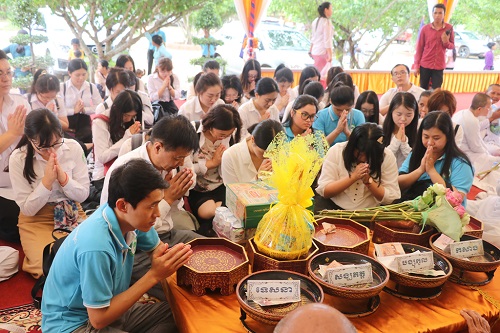 10月5日,柬埔寨皇家科学院孔子学院组织亡人节祭祀祈福活动,柬埔寨孔子学院柬方院长苏碧娜(VUTH Sopheakna)、中方院长柴克清、金边区部分汉语教师、柬方工作人员40余人共同参与了此次活动。