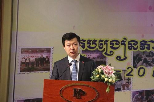 中国驻柬使馆政治处主任王德鑫先生提到,今年是中柬建交60周年,在双方的共同努力下,全面战略合作伙伴关系继续向广度和深度发展,给两国人民带来实实在在的利益。他表示,近年来在柬蓬勃开展的汉语学习为中柬务实合作快速发展做出了积极重要的贡献,这与双方历任领导同事和一批批汉语教师、志愿者的共同努力息息相关。他希望各位志愿者老师作为文化交流的使者,继续不忘使命,砥砺前行。